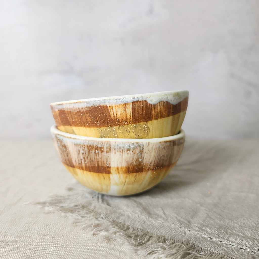 Introducing a charming assortment of hand-drawn and minimalist porcelain bowls, perfect for serving tapas or desserts with a personal flair. Designed with versatility in mind, these bowls are ideal for presenting delicious dishes and dips or for storing cherished trinkets. Crafted with care, each porcelain bowl is carefully handmade, featuring a clear gloss glaze on the interior to highlight the contents and enhanced with bold textural brush strokes on the outer surface, glazed with a soft semi-white matte finish to smooth the textured touch. Whether used for culinary delights or as decorative elements, these bowls add a touch of elegance and fun to any occasion.Domestic Shipping is Free for all domestic orders over $200. All Shipping is calculated by weight & added at check out.