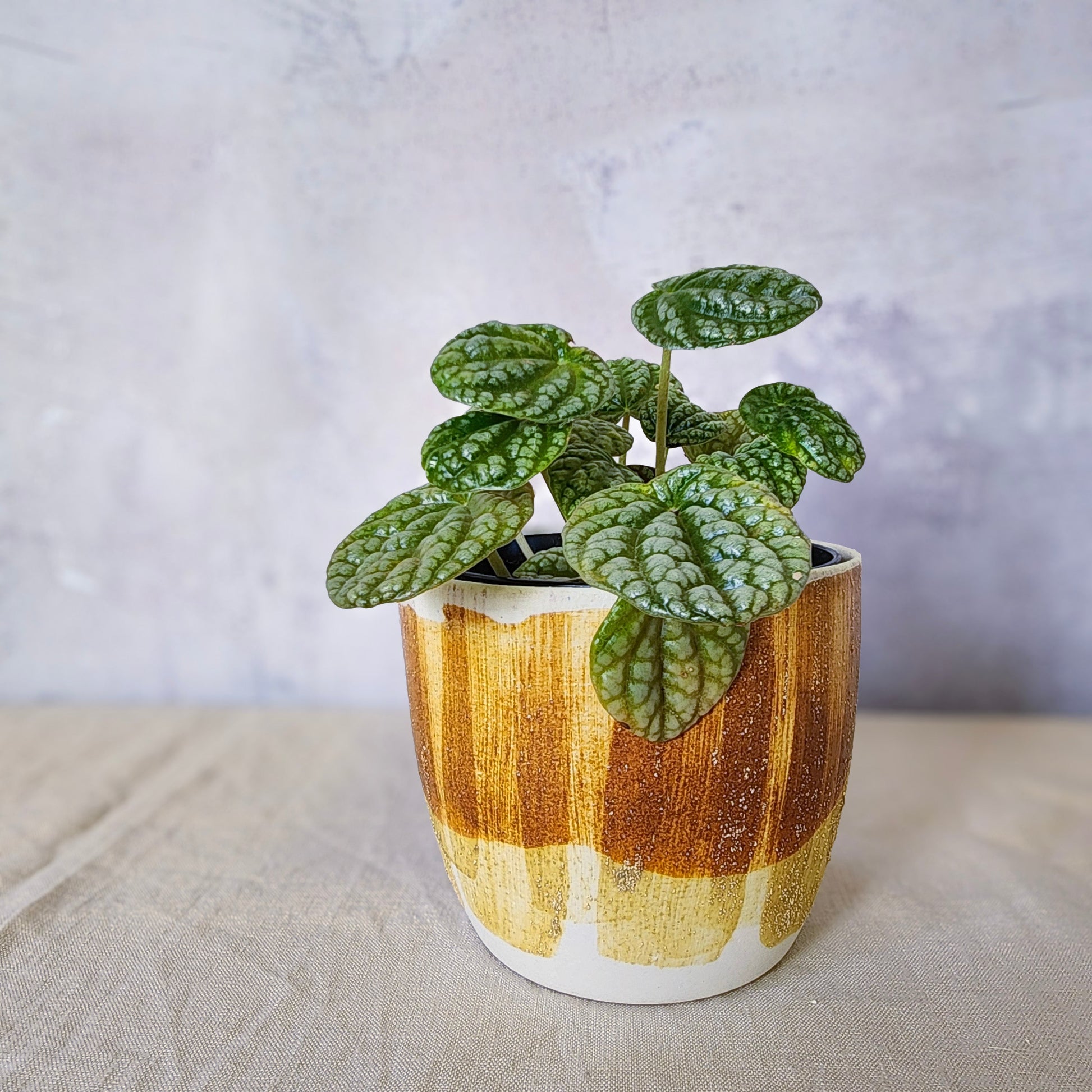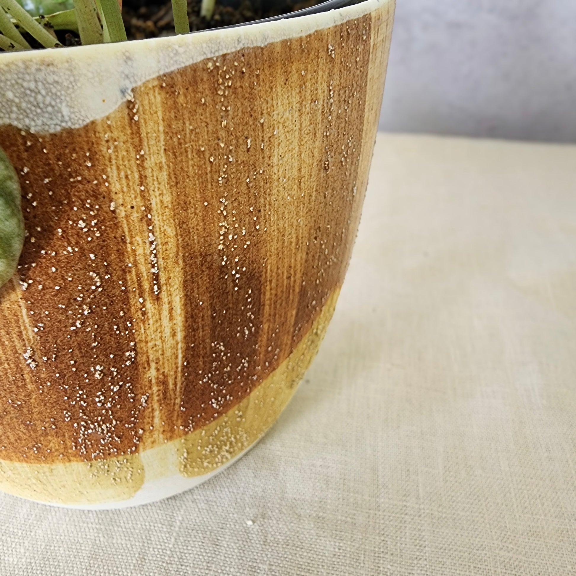 Introducing our handcrafted porcelain pot planter, featuring a bold brush stroke design crafted from Australian clay. Each pot is unique, as the brush strokes are individual and distinctive. This exquisite pot planter showcases a unique textural clay-inspired texture, with organic bold lines adding character to its contemporary form. It's timeless elegance makes it an ideal centrepiece or a graceful holder for your favourite plants. This planter is a great complement to your greens, lending a touch of sophistication to your home and office. Each potted plant is lovingly handcrafted, with a white gloss glaze adorning the interior and a semi-matte white texture gracing the top exterior for a refined finish.LARGE – 14cm H | 16.40cm D - approx
