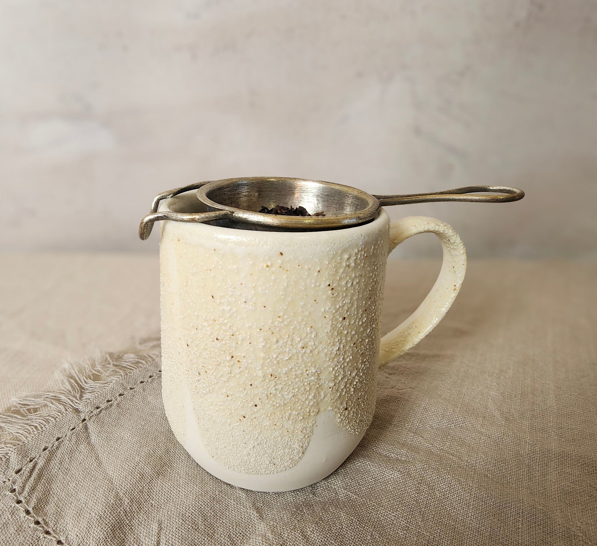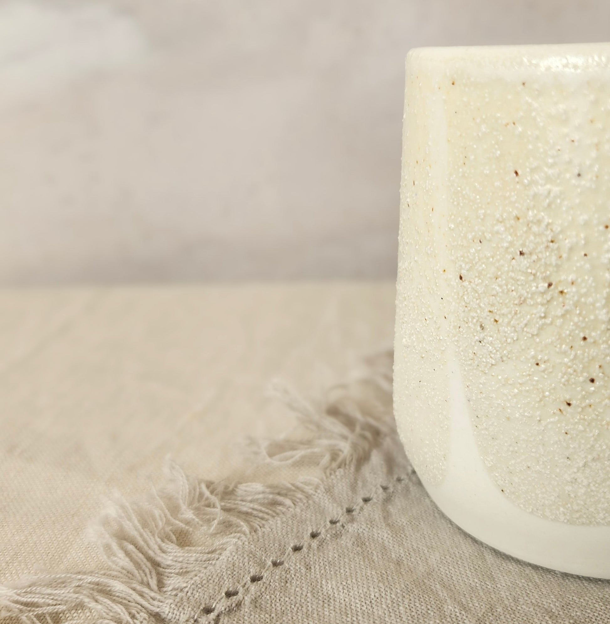 Minimalist ceramic tea and espresso mugs embody a modern aesthetic and charm, perfect for a cozy moment on the couch or in bed with a soothing cup of tea or a shot of espresso. Ideal for indulging in your special morning rituals, they're a perfect gift for tea and coffee enthusiasts. Handcrafted using white porcelain slip, each mug features a clear gloss glaze on the interior and a semi-matte white glaze on the exterior, enhancing the clay's unique texture. The mugs' exteriors are decoretade with a semi-white matte glaze, leaving the bottoms exposed for a stone-like surface, showcasing the unique brush strokes. Each piece is fired to stoneware temperature, ensuring durability. Every piece is unique, with variations in colors, brush strokes, and glaze, adding to the beauty of these handcrafted ceramics. All our ceramics are handmade, and colours, brush strokes, and glaze variations may vary from the photos shown. This is not considered a fault but is part of the beauty of these glazes and the handcrafted ceramics process.GREAT FOR: Fresh Coffee, Tea or Hot Chocolate